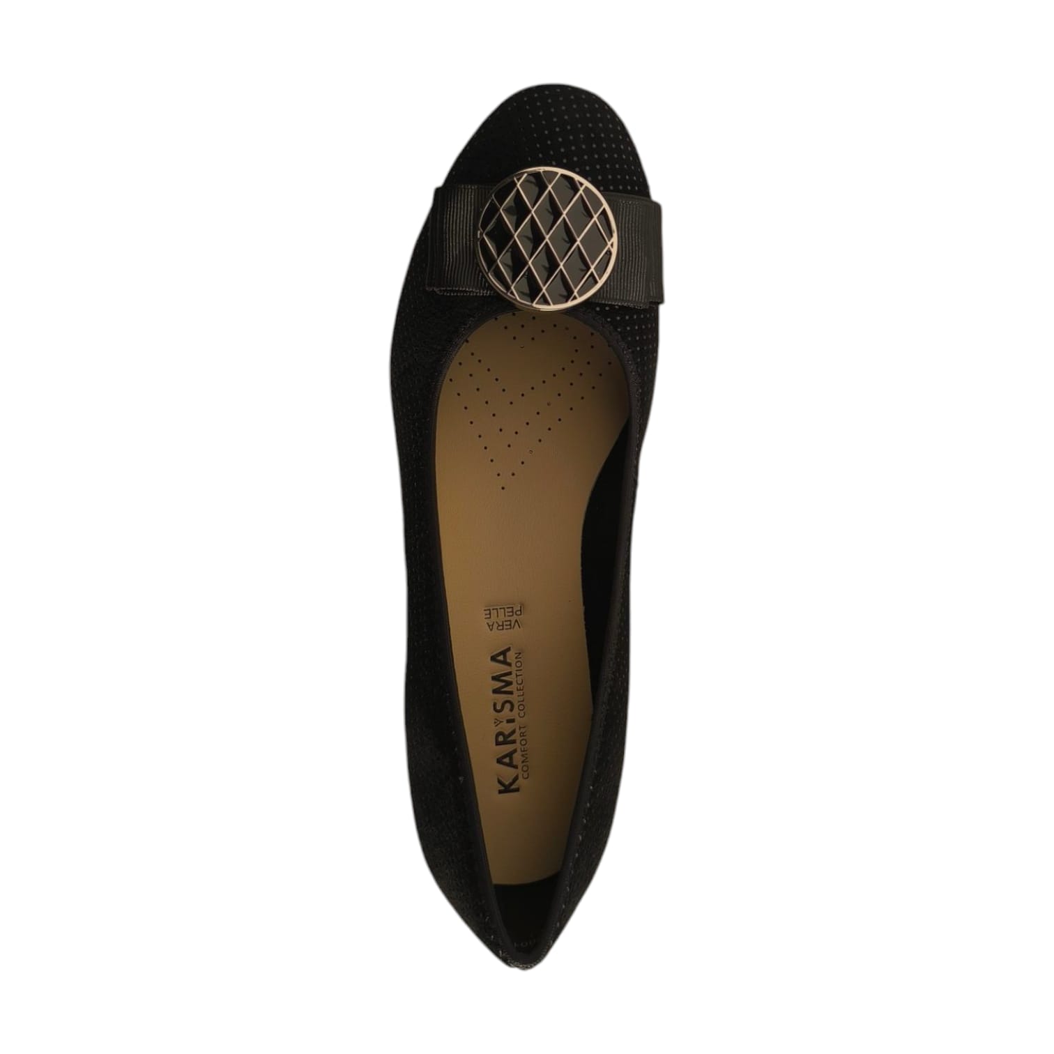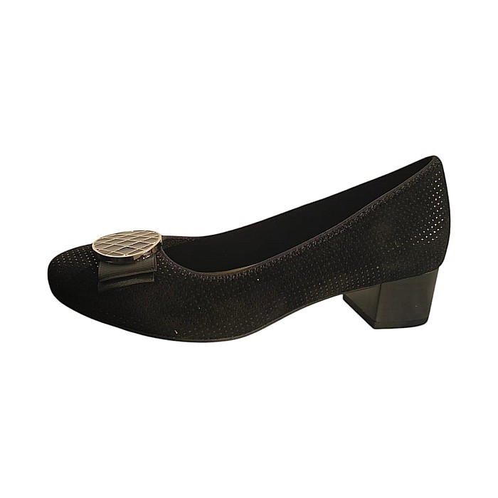 Pantofi cu exterior din piele naturala intoarsa, stantata, Cu brant moale si talpa flexibila. Interior din piele naturala si textil. Inaltime toc 4 cm.