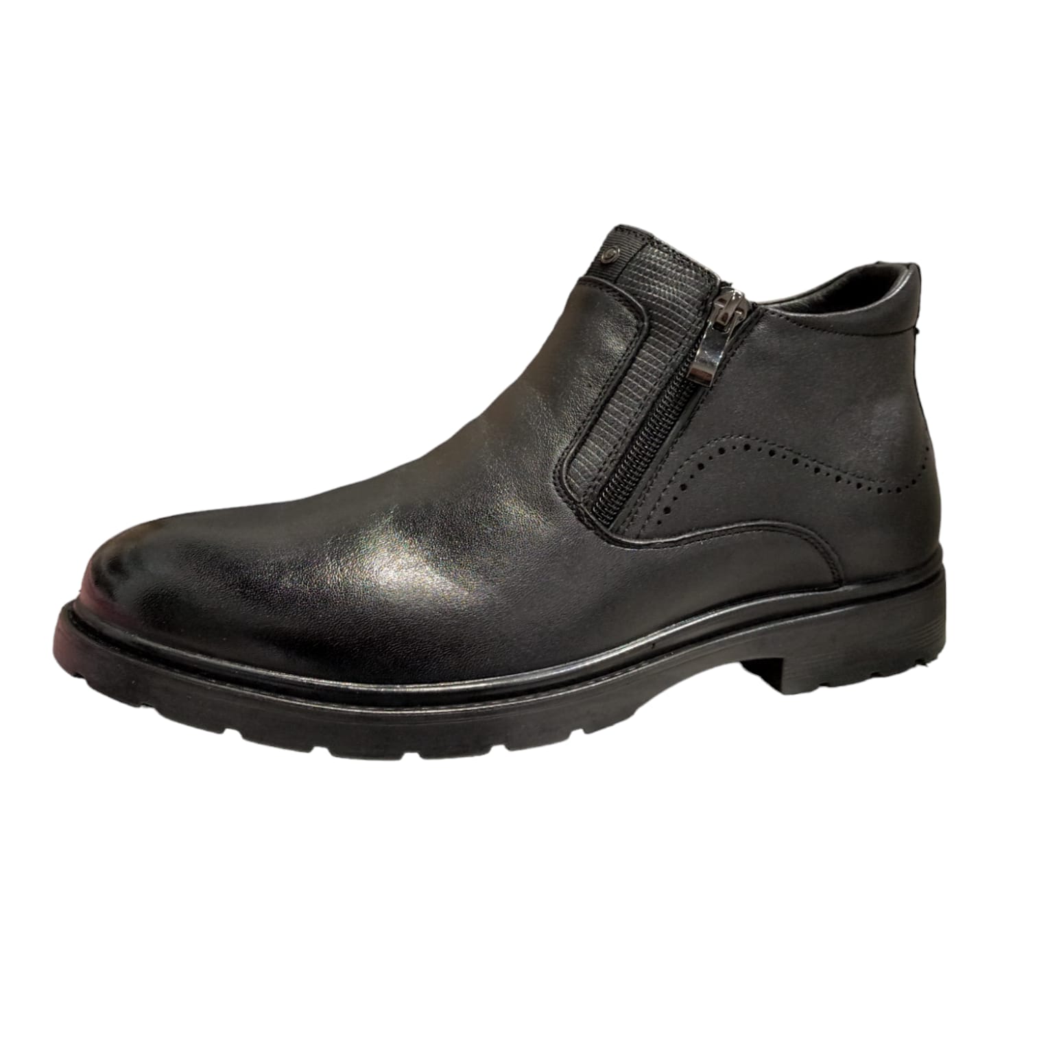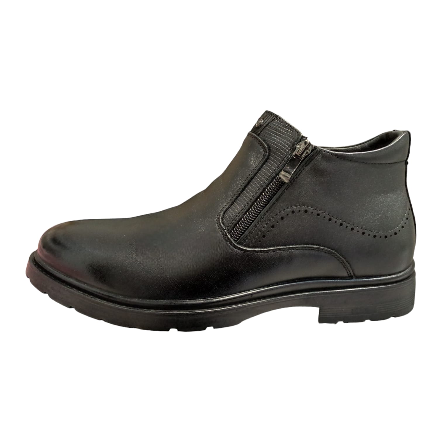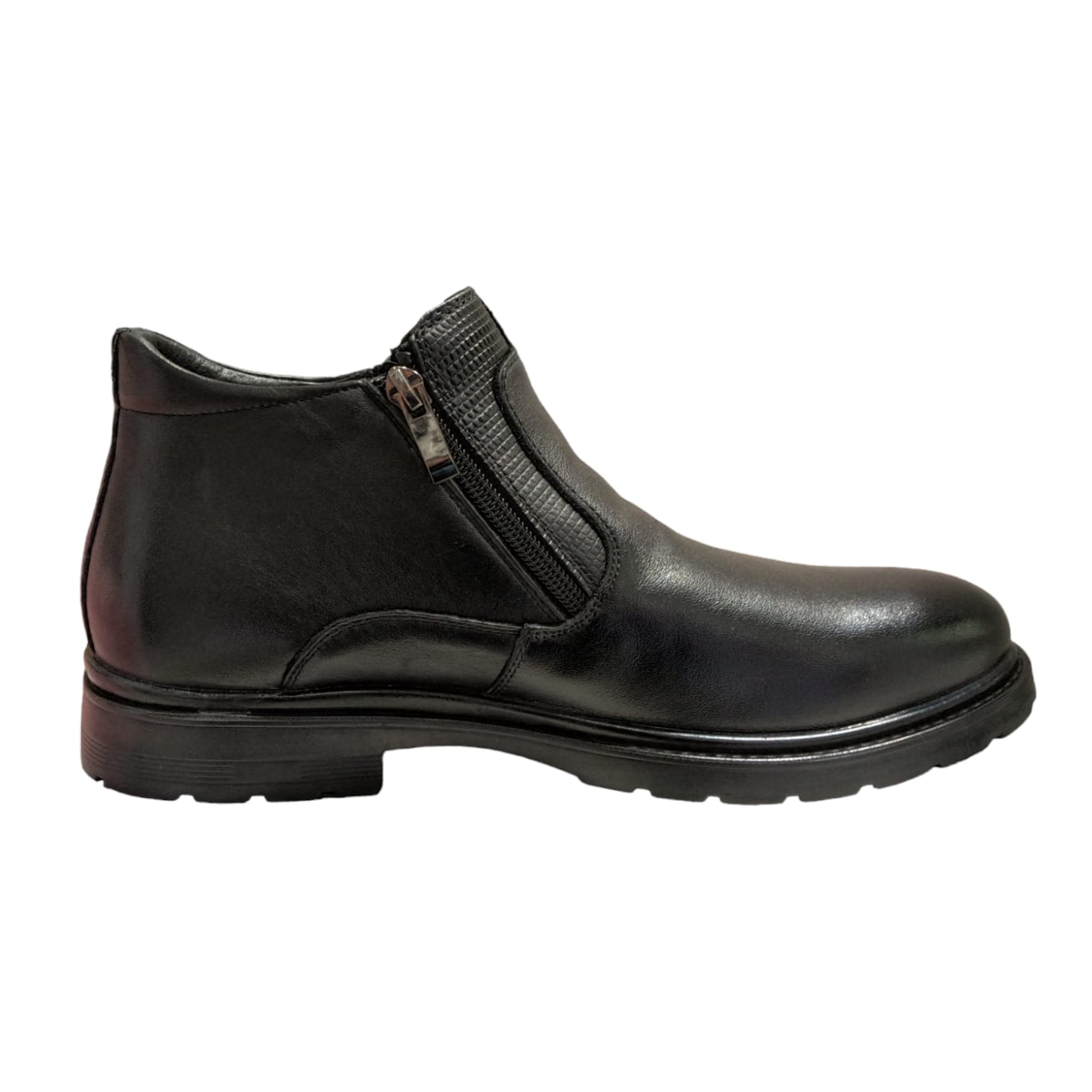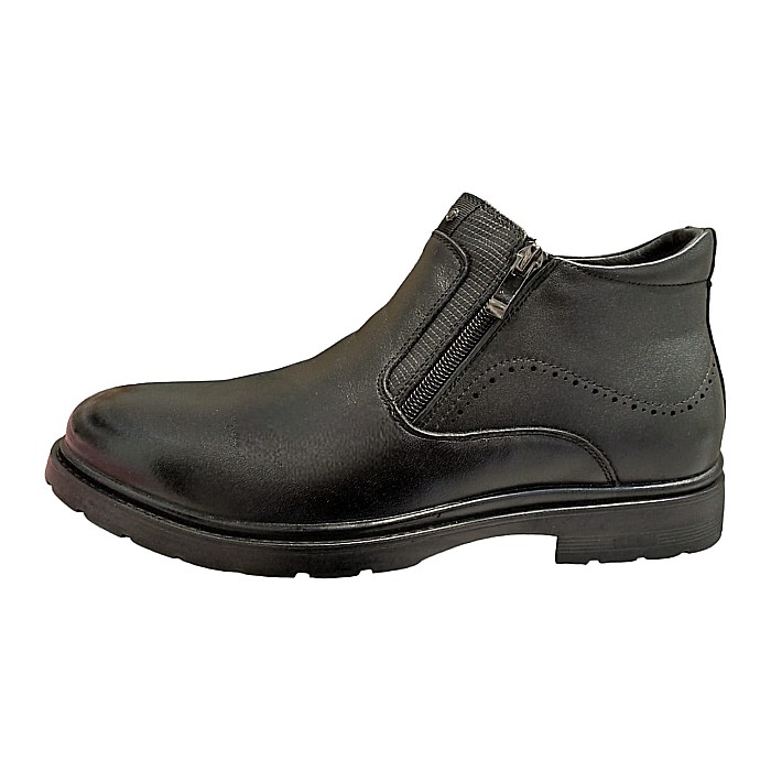 Ghete din piele naturala, cu doua fermoare si imblanite. Calapod mai lat (H).