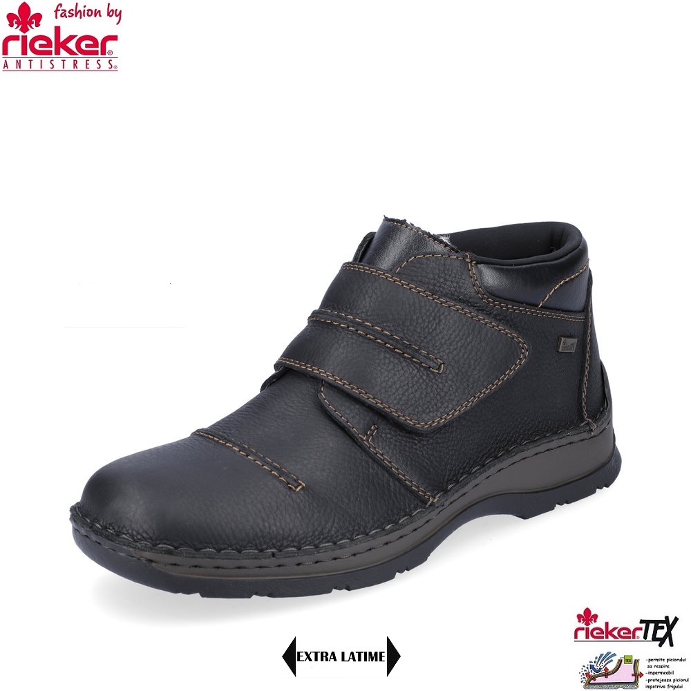 Ghete pentru barbati marca Rieker cu EXTRA LATIME din piele naturala,cu talpa flexibila,captuseala naturala de oaie si membrana TEX.