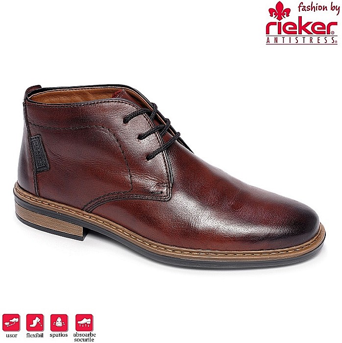 Ghete pentru barbati marca Rieker din piele naturala cu talpa flexibila si brant moale cu tehnologie ANTISTRESS.