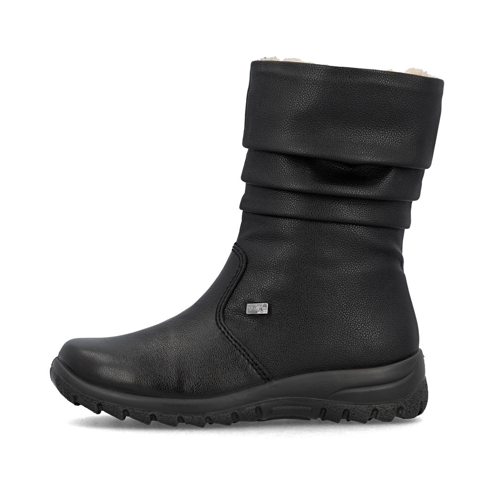 Cizme IMPERMEABILE pentru dama marca Rieker din piele naturala neteda, cu talpa flexibila, brant moale cu tehnologie ANTISTRESS, captuseala naturala de oaie si membrana TEX.