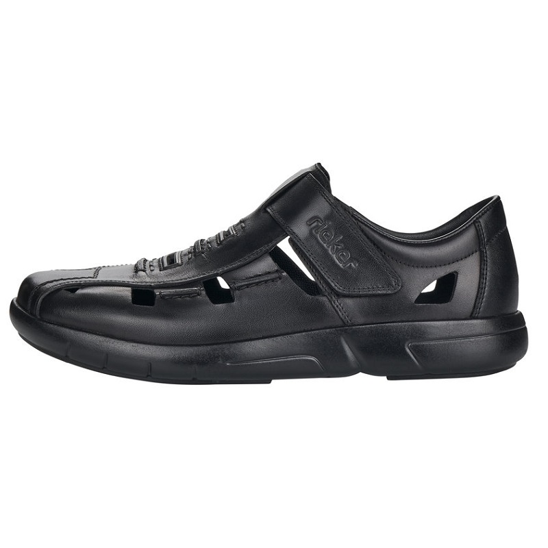 Sandale pentru barbati marca Rieker din piele naturala cu Extra Latime, talpa flexibila si brant moale din piele naturala cu tehnologie ANTISTRESS.