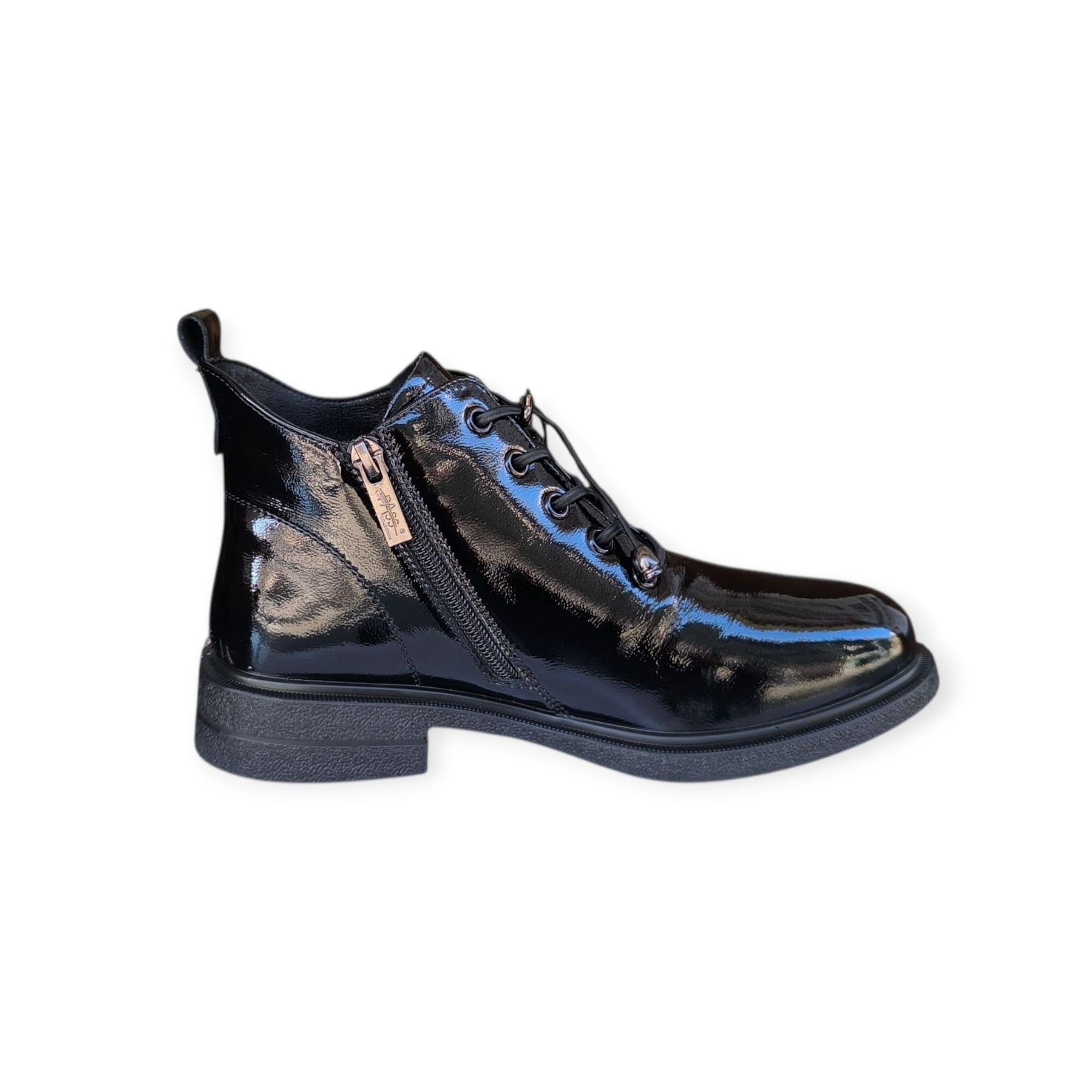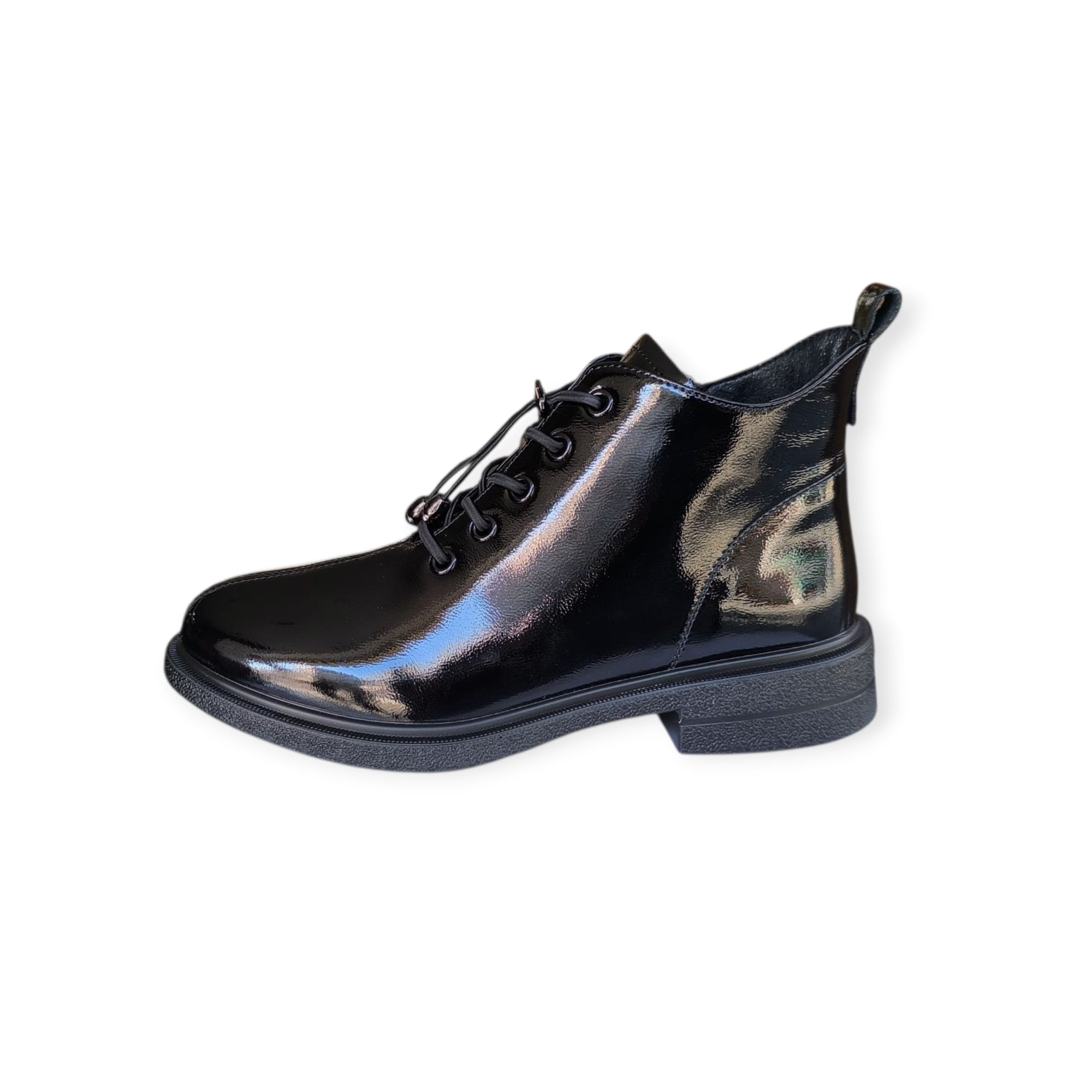 Ghete pentru dama marca PASS Collection din piele naturala lacuita, cu talpa flexibila si brant moale, captusala din blanita sintetica.