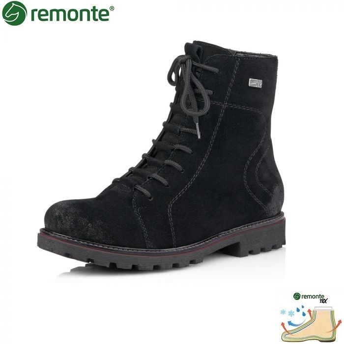Ghete impermeabile pentru dama marca Remonte din piele naturala cu talpa flexibila,brant moale, captuseala naturala de oaie si membrana TEX.