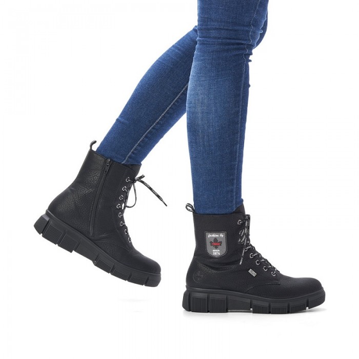 Ghete pentru dama impermeabile marca Rieker din piele ecologica cu talpa flexibila,brant moale cu tehnologie ANTISTRESS,captuseala naturala de oaie si membrana TEX.