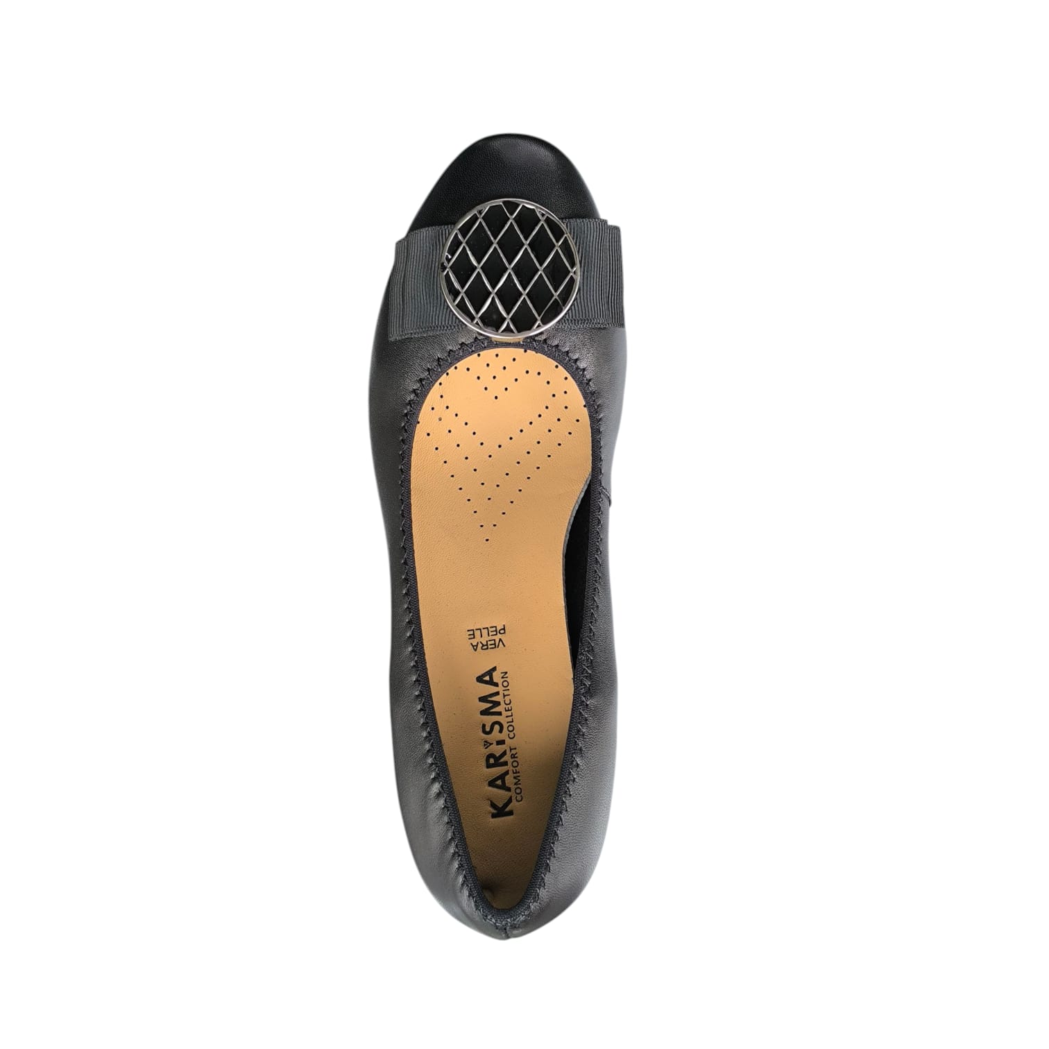 Pantofi cu exterior din piele naturala. Cu brant moale si talpa flexibila. Interior din piele naturala si textil. Inaltime toc 4 cm.