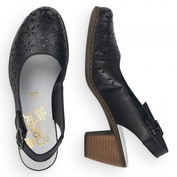 Pantofi Rieker tip sanda din piele naturala cu talpa flexibila si brant moale din piele cu tehnologie ANTISTRESS.