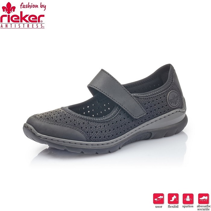 Pantofi pentru dama marca Rieker din piele ecologica cu talpa flexibila si brant moale cu spuma de memorie (Memory Soft).