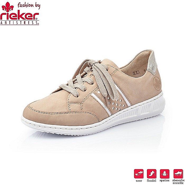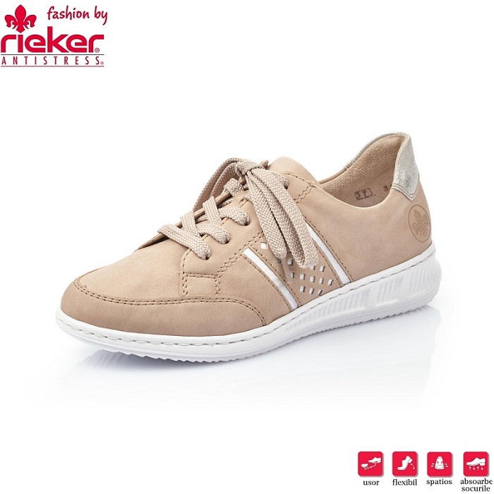 Pantofi pentru dama marca Rieker din piele ecologica cu talpa flexibila si brant moale cu tehnologie ANTISTRESS.