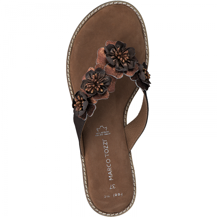 Papuci de strada pentru dama din piele naturala marca Marco Tozzi cu talpa flexibila si brant moale de piele cu tehnolgie FeelMe.