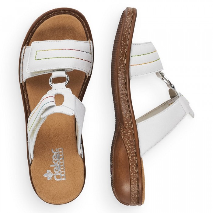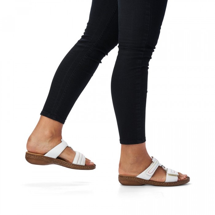 Papuci de strada pentru dama marca Rieker din piele naturala, cu talpa flexibila si brant moale antiperspirant cu tehnologie ANTISTRESS.