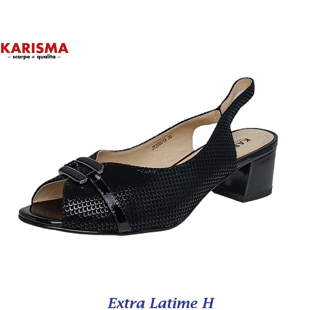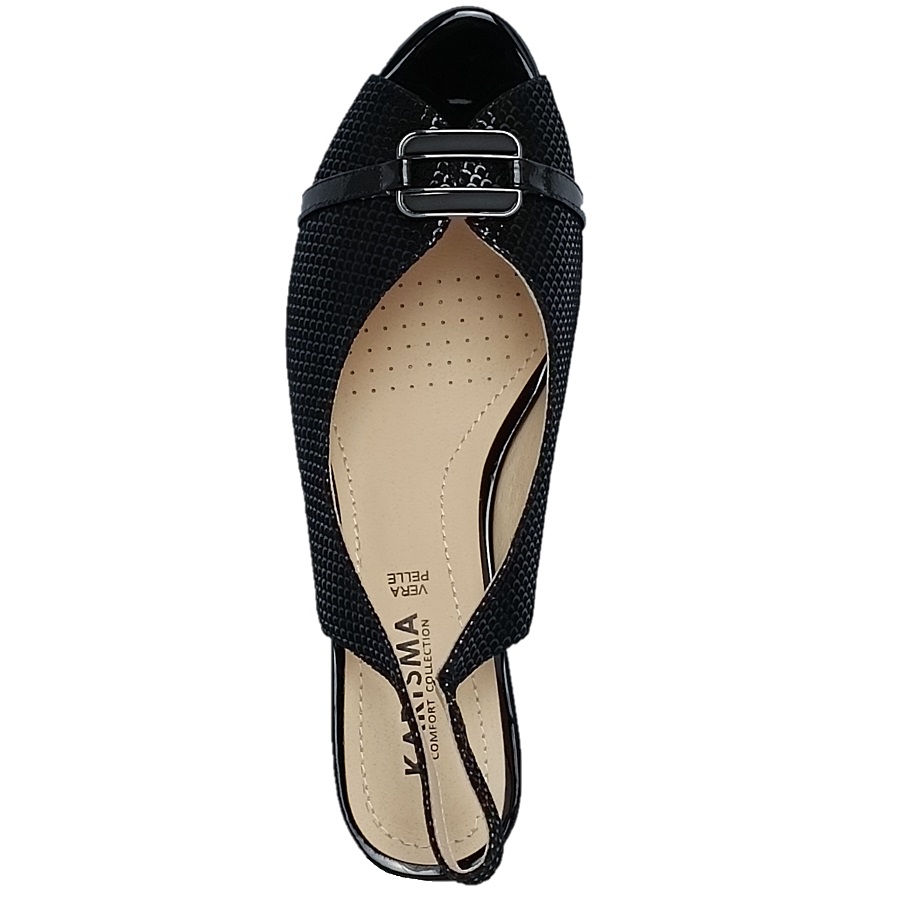 Sandale pentru dama marca Karisma din piele naturala intoarsa cu insertii de piele lacuita. (EXTRA LATIME)