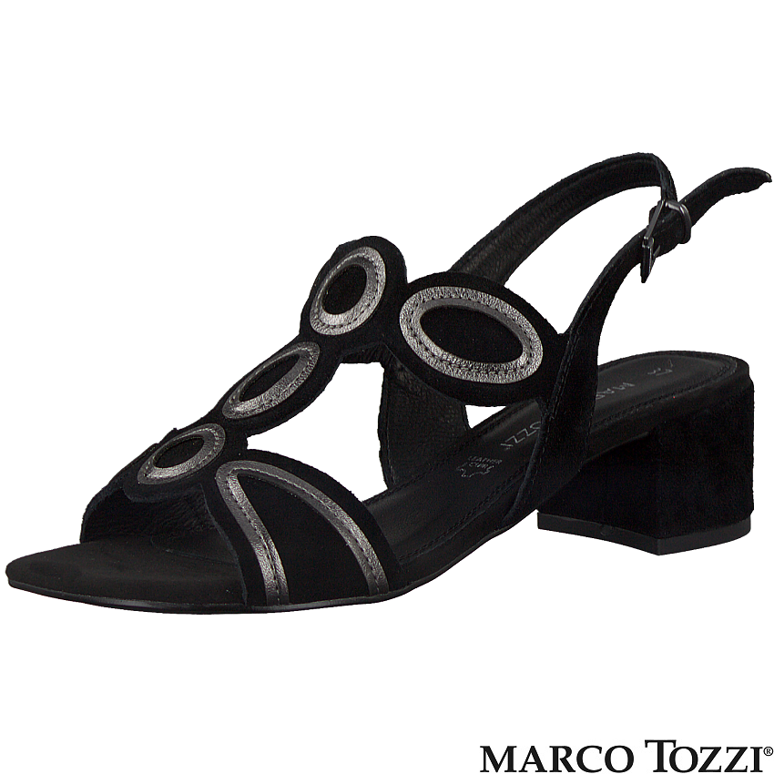 Sandale pentru dama din piele naturala si piele ecologica marca Marco Tozzi cu talpa flexibila si brant moale de piele cu tehnolgie FeelMe.