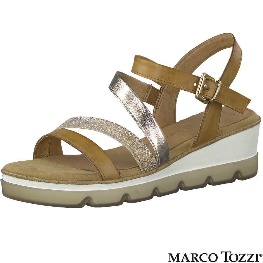 Sandale pentru dama din piele naturala marca Marco Tozzi cu talpa flexibila si brant moale de piele cu tehnolgie FeelMe.