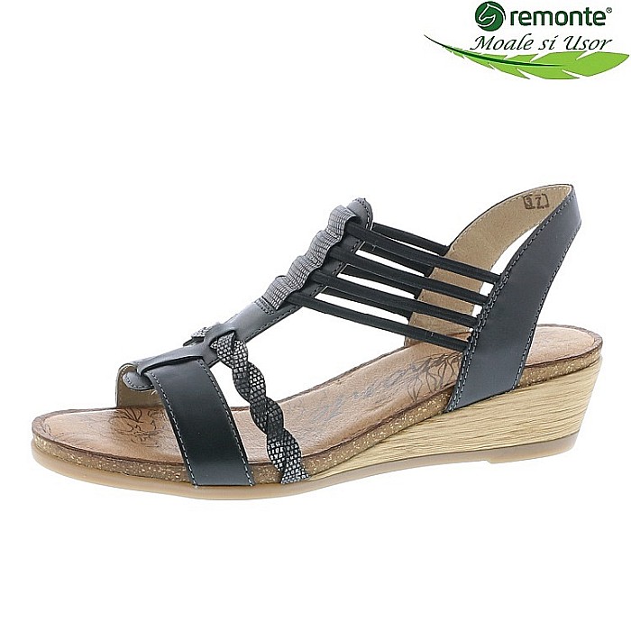 Sandale pentru dama marca Remonte, din piele naturala cu talpa ortopedica si brant moale din piele cu tehnologie Lite&Soft