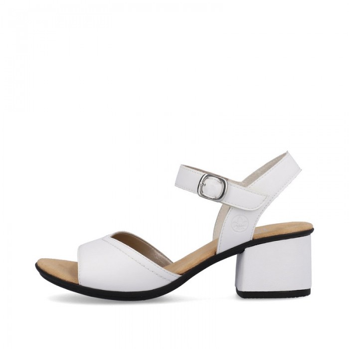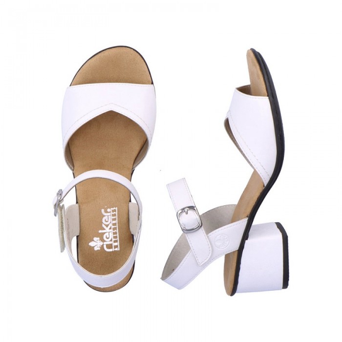 Sandale cu toc pentru dama marca Rieker din piele naturala cu talpa flexibila si brant moale cu tehnologie ANTISTRESS.