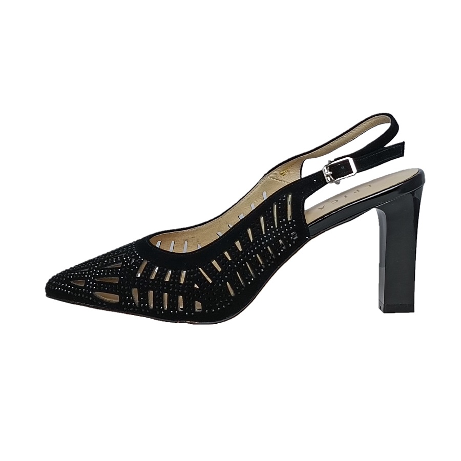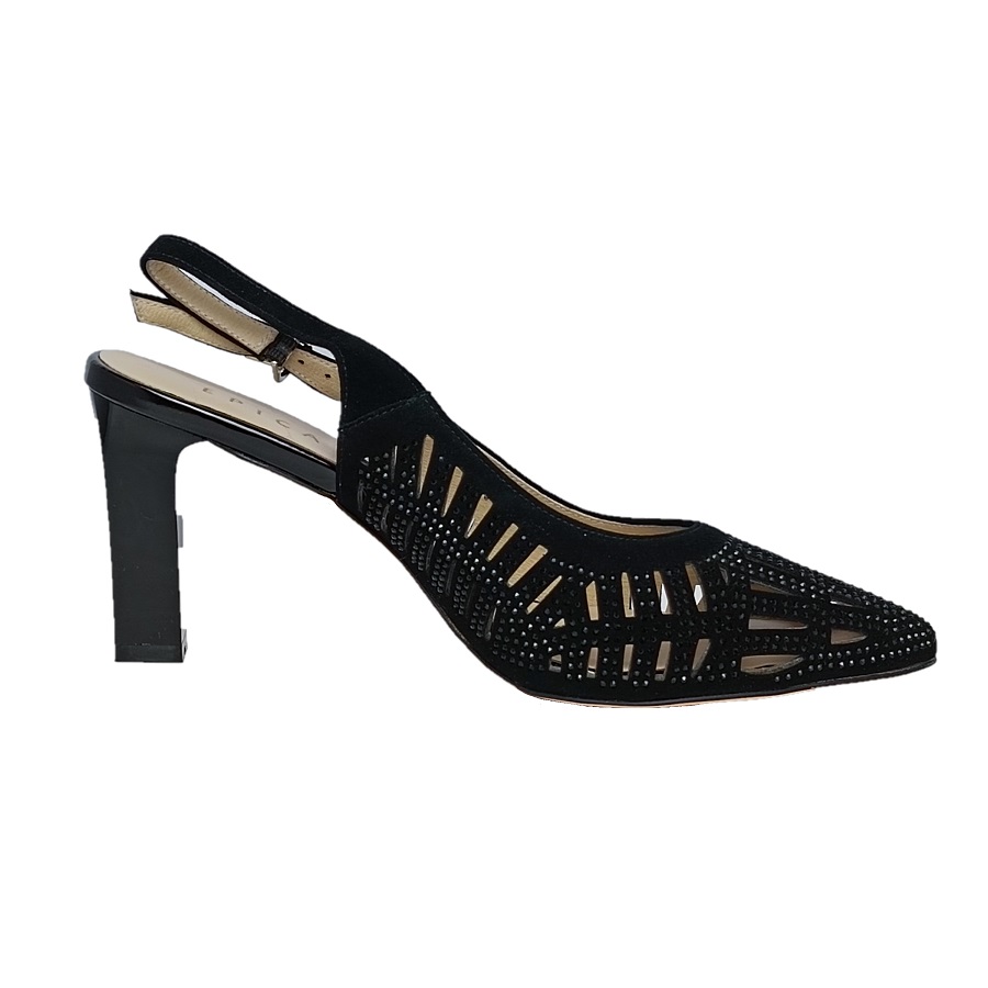 Pantofi tip sanda marca EPICA din piele naturala intoarsa si material textil tip plasa, cu insertii de paiete negre, talpa flexibila si brant moale de piele cu tehnologie Soft-Feel.
