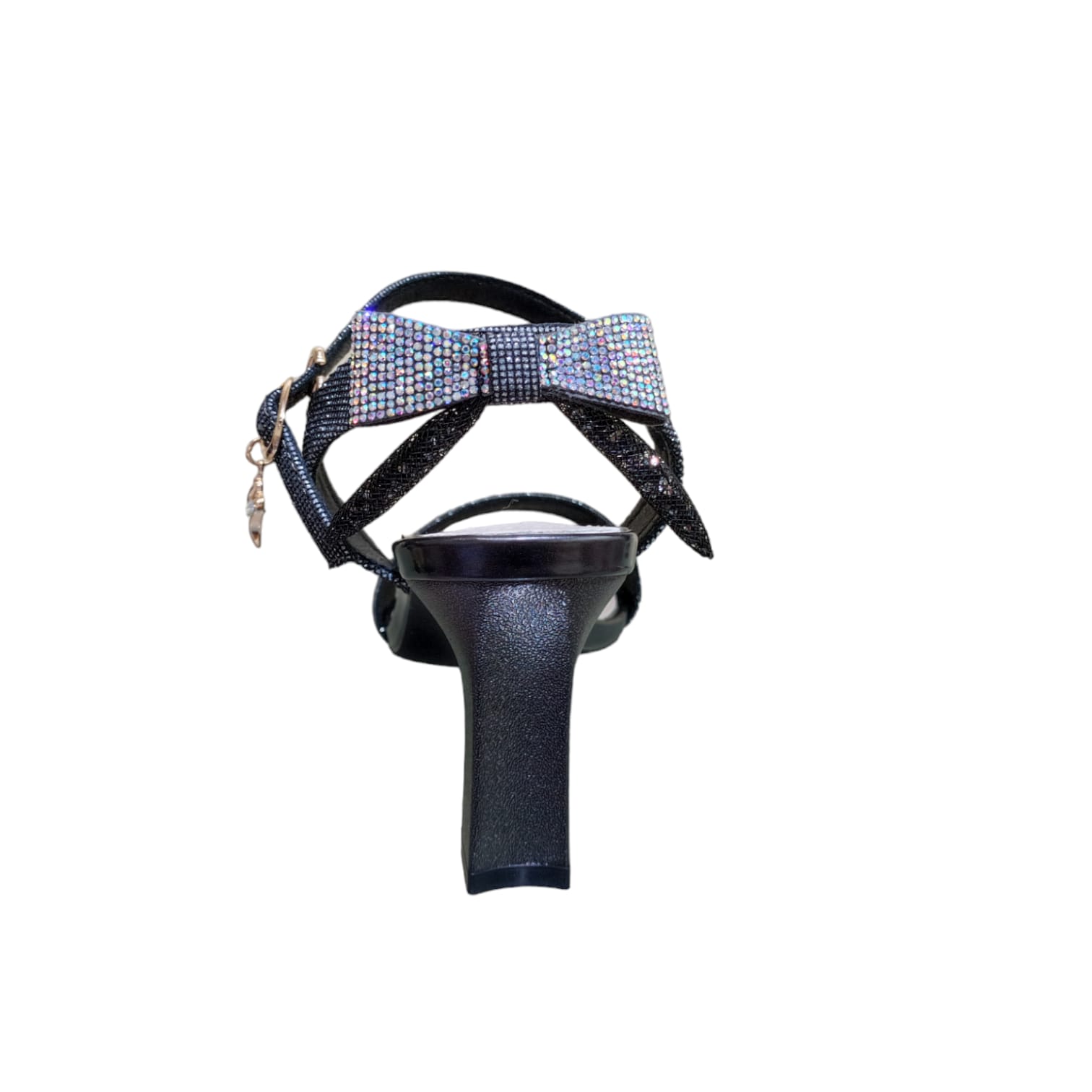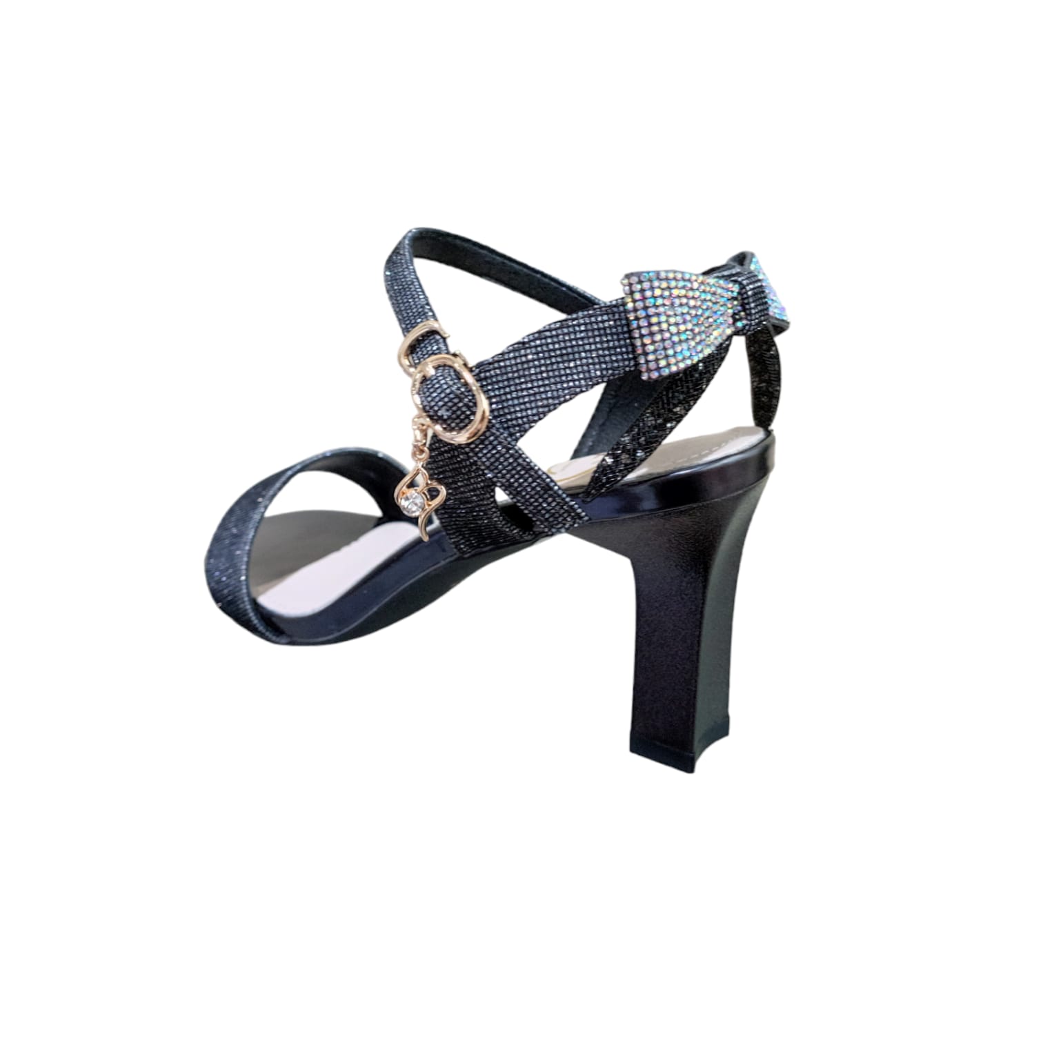 Sandale de dama din piele naturala, cu paiete fine. Inaltime toc 8 cm.