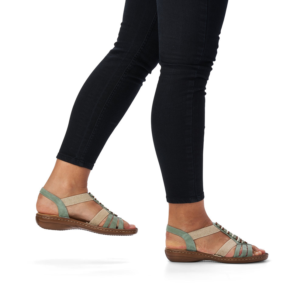Sandale pentru dama marca Rieker din piele ecologica cu talpa flexibila si brant moale cu tehnologie ANTISTRESS.